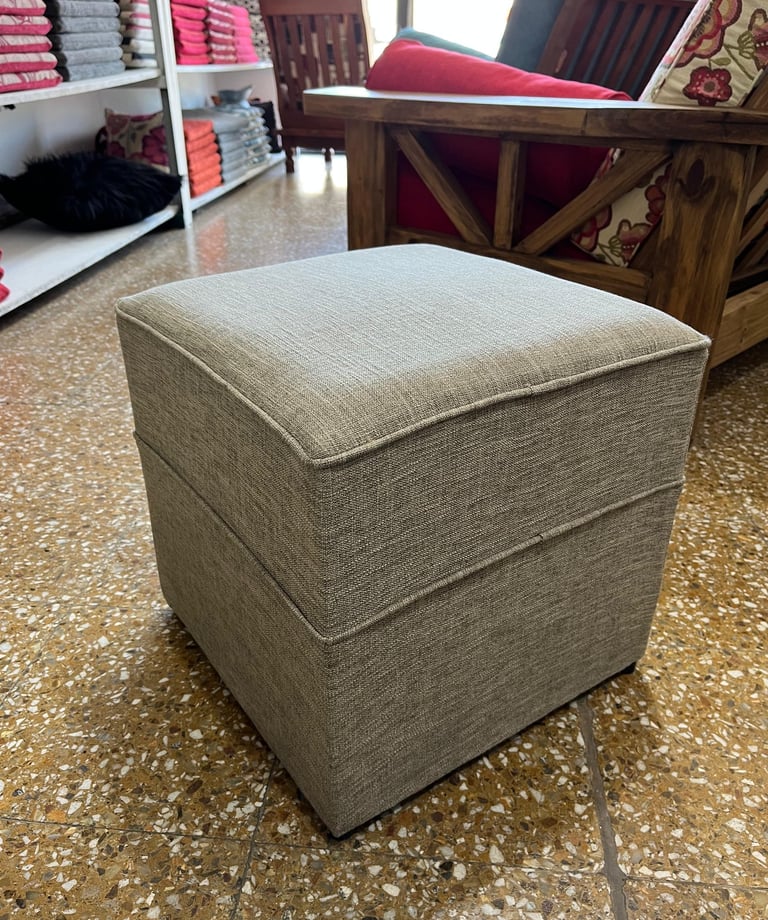 Puff combinable, perfecto para sentarte o apoyar los pies. Medidas 40x40x40 cm. Relleno de placa de alta densidad. Disponible en todas las telas, excepto las de exterior.